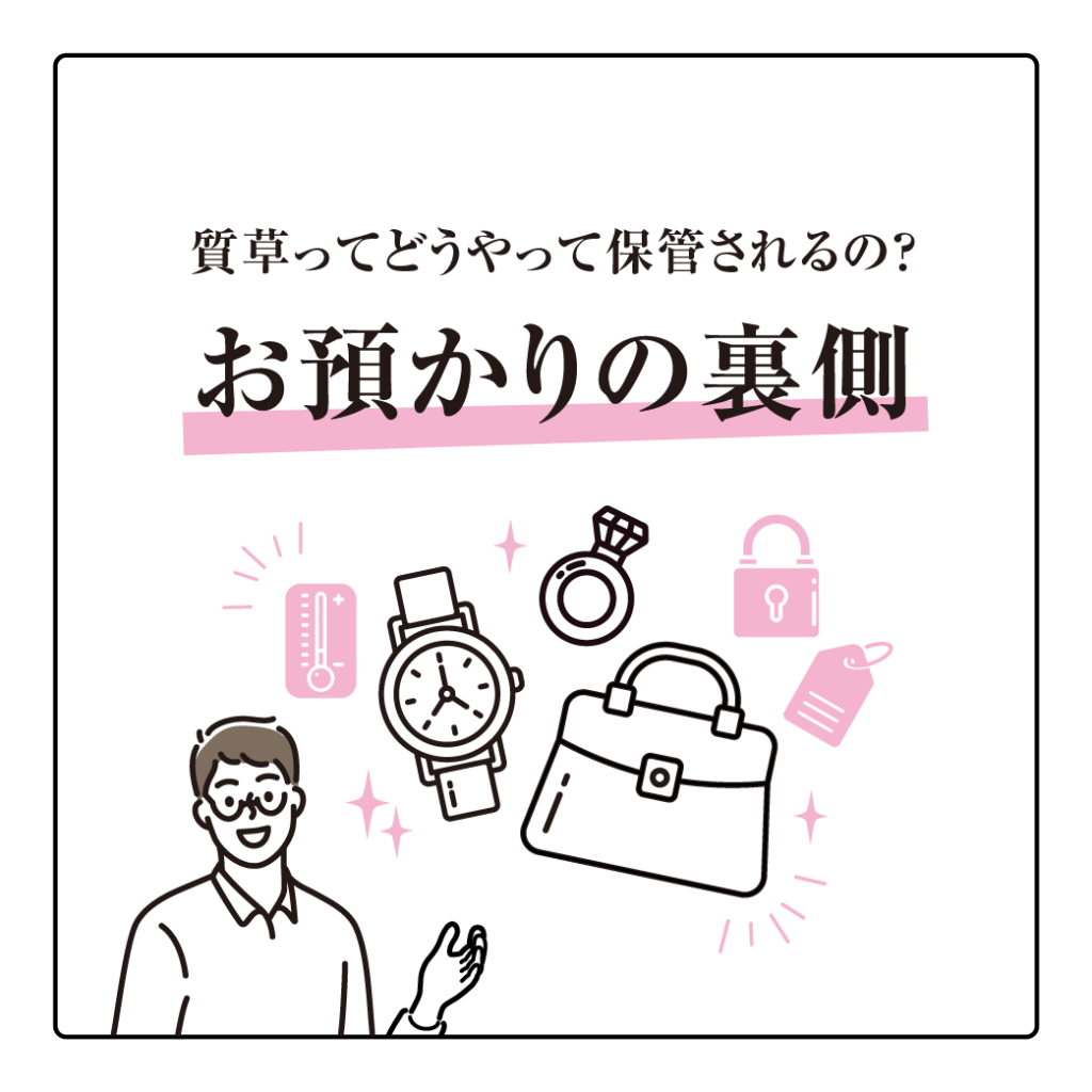 質預かりは、品物を鑑定し、当店にお預けいただくことで融資を受けられる合理的なサービス。昔から続く質預かりサービスは、品物を所有する形や価値観が多様化した今の時代にもフィットします。