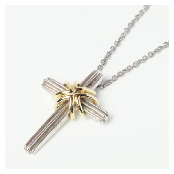 スターリングシルバー(silver925)に一部が18金(K18)で制作された、ティファニーのシグネチャークロス ペンダントネックレスです。十字がモチーフとなったデザインのペンダントは、根強い需要と人気がありますね。ブランドアクセサリーとしての価値をしっかりとお見積りいたしました。
