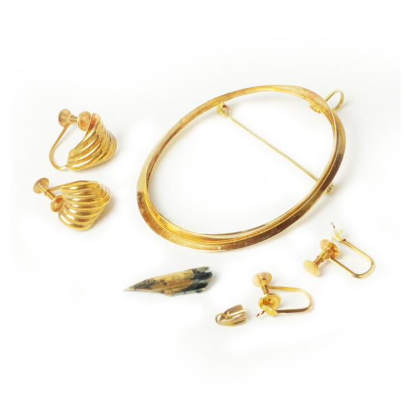 金製のブローチ、イヤリング、万年筆のペン先を買取りさせていただきました。