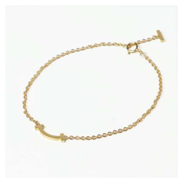 18金(K18)で制作された、Tスマイル ブレスレットです。笑顔の口元のように見えるデザインが、キュートですね。附属品がない状態でのお見積もりご依頼でしたが、しっかりと拝見させていただき、ブランドジュエリーとしての価値をお見積りすることができました。