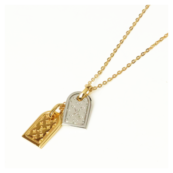 ペンダントトップに小さなモノグラム模様、ナノグラムがデザインされたネックレスです。ゴールド色とシルバー色の組み合わせが華やかな素敵なお品物でした。箱、保存用の布袋も一緒にお持ちいただき、しっかりと精一杯のお見積りをご提案いたしました。
